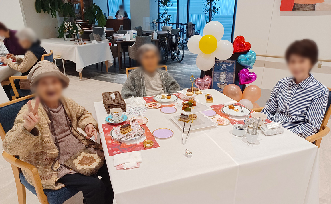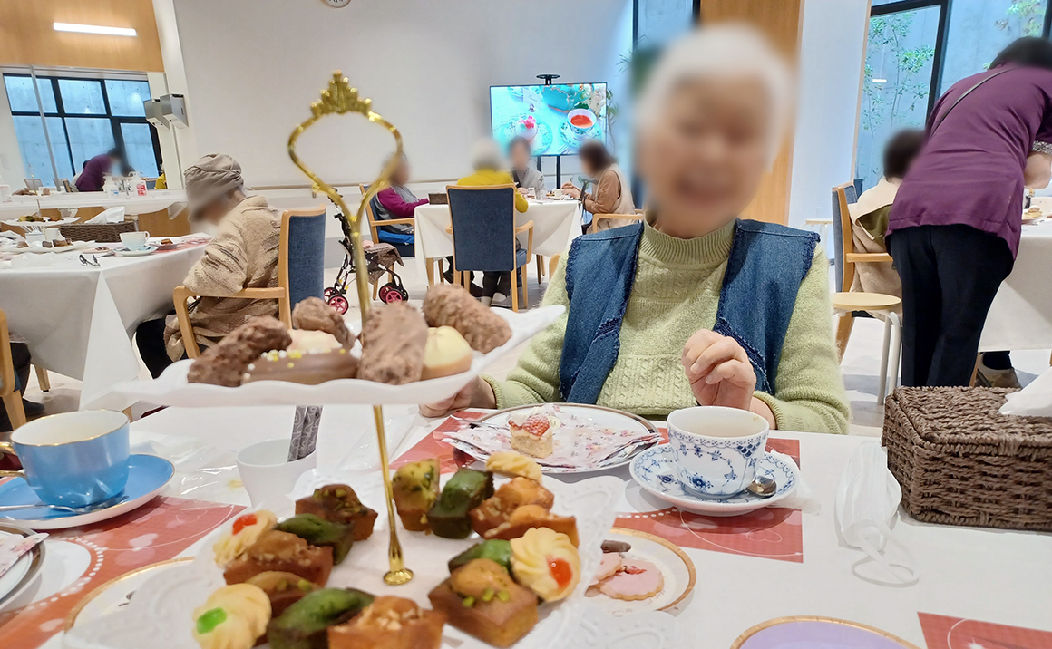 一雨ごとに春めいてくる本日はアフターヌーンティーを開催しました。 スタンドには「プアリリィ」さんの可愛らしいサイズのケーキに焼き菓子など12種類が彩ります。 「わぁ凄い!どれも可愛らしいねぇ」「今日は何かお祝い?」と次々に驚きの声があがり、席に珈琲や紅茶が届いたところでお茶会のスタートです。 どれから食べるべきか迷われる方やケーキから攻める方、色々な召し上がり方がありますが、 どの方も紅茶や珈琲もおかわりし同じテーブルの方とお喋りを楽しまれ、笑顔あふれる時間となりました。