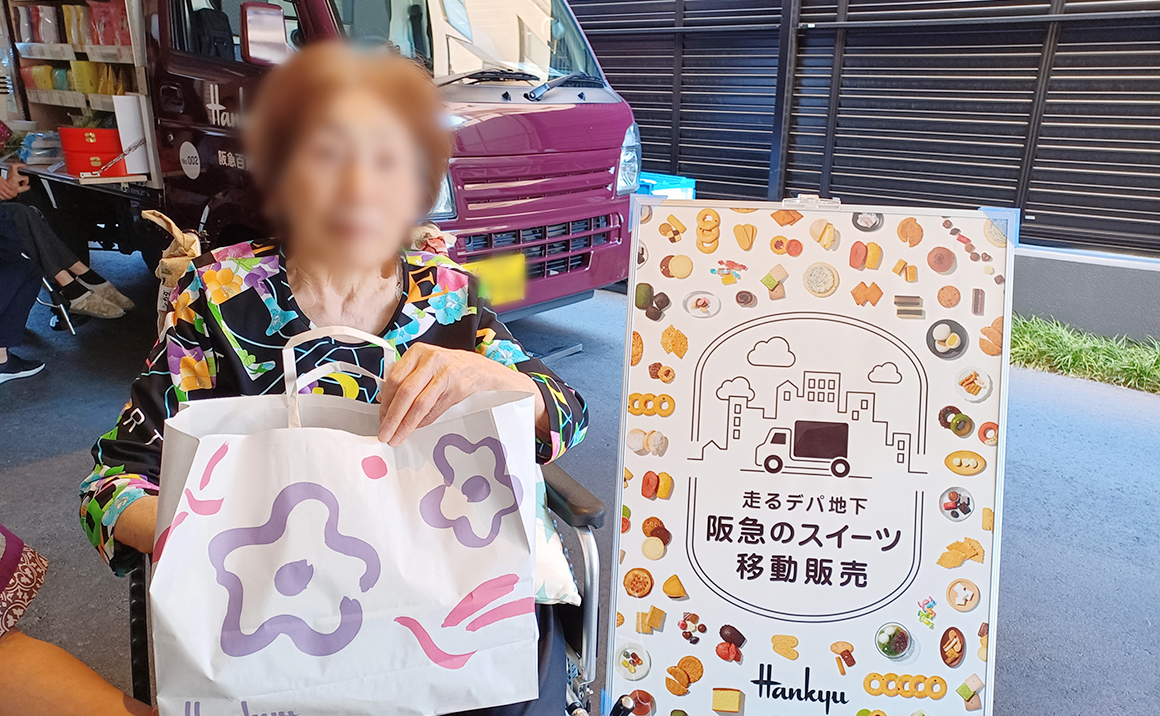 本日は、プレザングラン岡本で2回目の開催となる、阪急百貨店の移動販売の日でした♬ 阪急百貨店限定販売のスイーツや、期間限定のお菓子など前回とは違う様々なラインナップに驚かれ、 「こんなにたくさん食べられるかしら」とカゴたくさんのお買い物を楽しまれました。