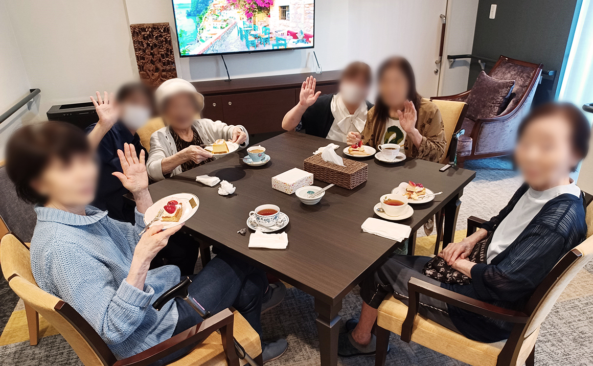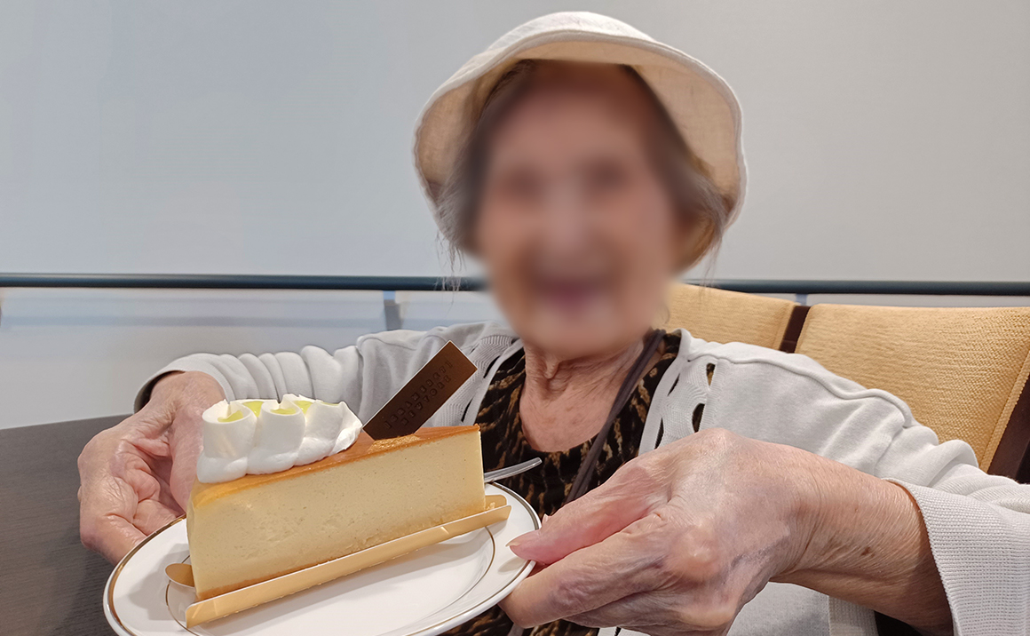 今日は皆様が毎月楽しみにされているお茶会の日です♪ グラマシーニューヨークのケーキをお取り寄せしました。 チーズケーキ、イチゴのタルト、モンブラン、ショートケーキの中から一つ選んでいただき、 楽しいお茶会のスタートです♫ 「見た目が可愛いケーキやね~!」「美味しくてぺろりと食べてしまったわ!」とお喋りにも花が咲く時間となりました。