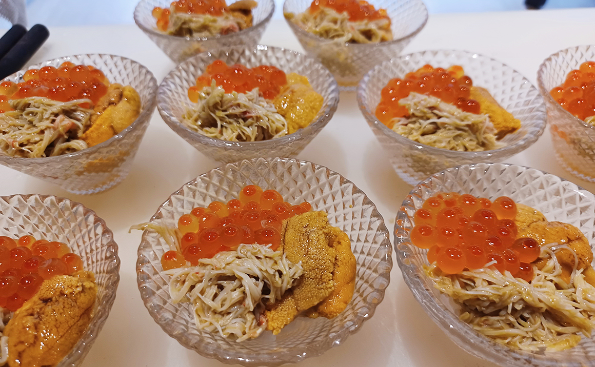 握り寿司の後は、ウニ・いくら・カニが贅沢に乗った小さな丼や巻物を楽しまれました。 コースが全て終わった後は大トロやのどぐろの炙りなどお好きなお寿司を追加で注文され、 「こんなにお腹いっぱい食べたの久しぶりだわ!大満足!」と最後まで堪能されました♫