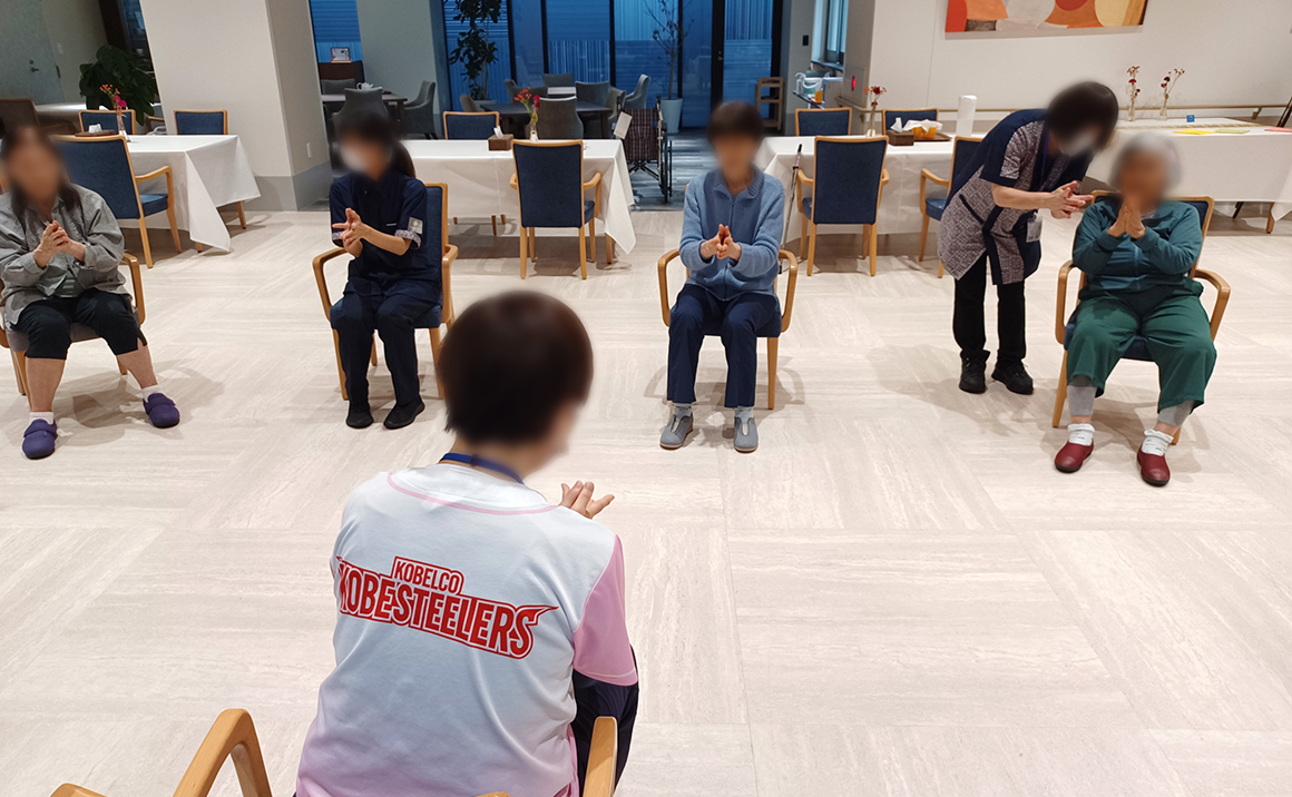 棒体操やボールを使ったストレッチなど皆さましっかり取り組まれます。