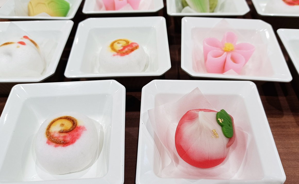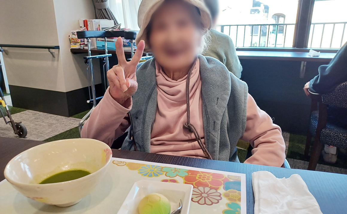 新年を迎え、お茶始めを行いました。 お抹茶と新春の上生菓子を楽しんでいただきました。 「今年は巳年やね~!私年女よ!」とお話にも花が咲きます。 お正月仕様の上生菓子を「可愛くて食べるのが勿体ないね!」と躊躇われながらもお抹茶と一緒に楽しまれました。