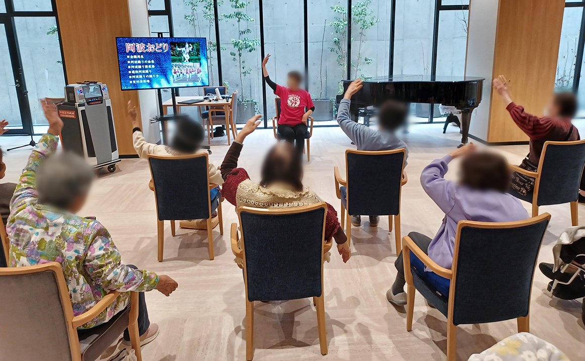 座って楽しむ阿波踊り体操を皆さまに体験していただきました。