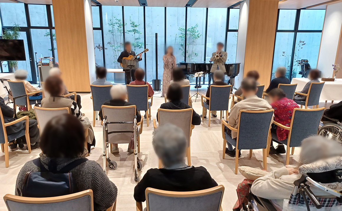 音にのってリズムをとる方や涙される方もおられ、JAZZの音楽に癒される時間を過ごされました。