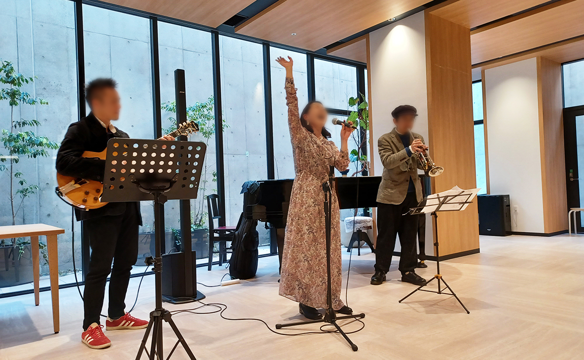 プロのアーティスト、JazzGuitarist 大野こうじ様 Vocal 溝口恵美子様 Trumpeter 黄 啓傑様を迎え、