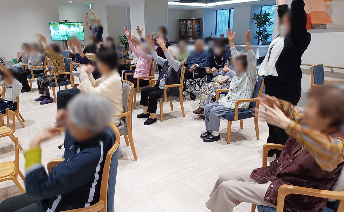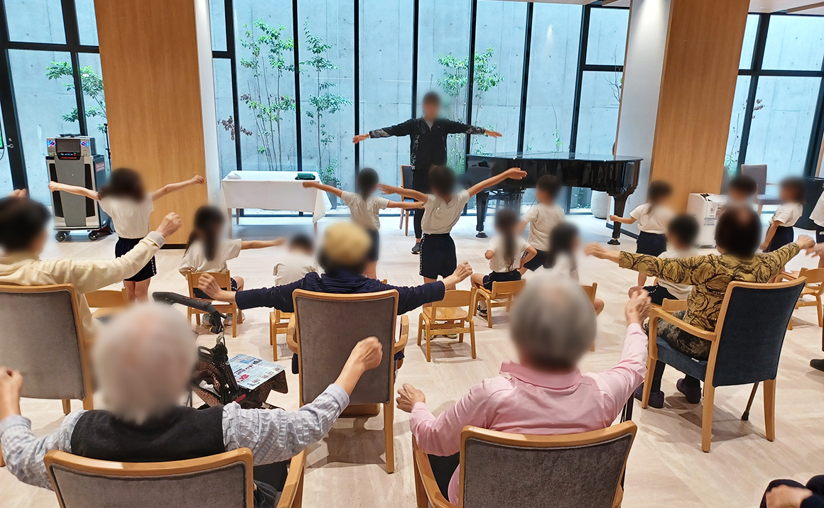 体操前のクイズでは園児の皆さんと一緒に盛り上がり、ラジオ体操は立ち上がって参加される方もいらっしゃいました。