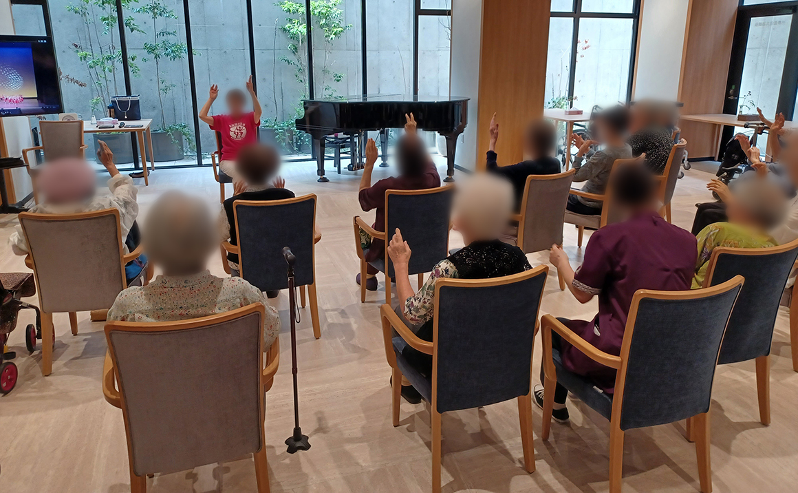 プレザングラン岡本では月に2回ボランティアの方をお招きし、歌やダンス・体操など様々なレクリエーションを楽しんでいただいております。