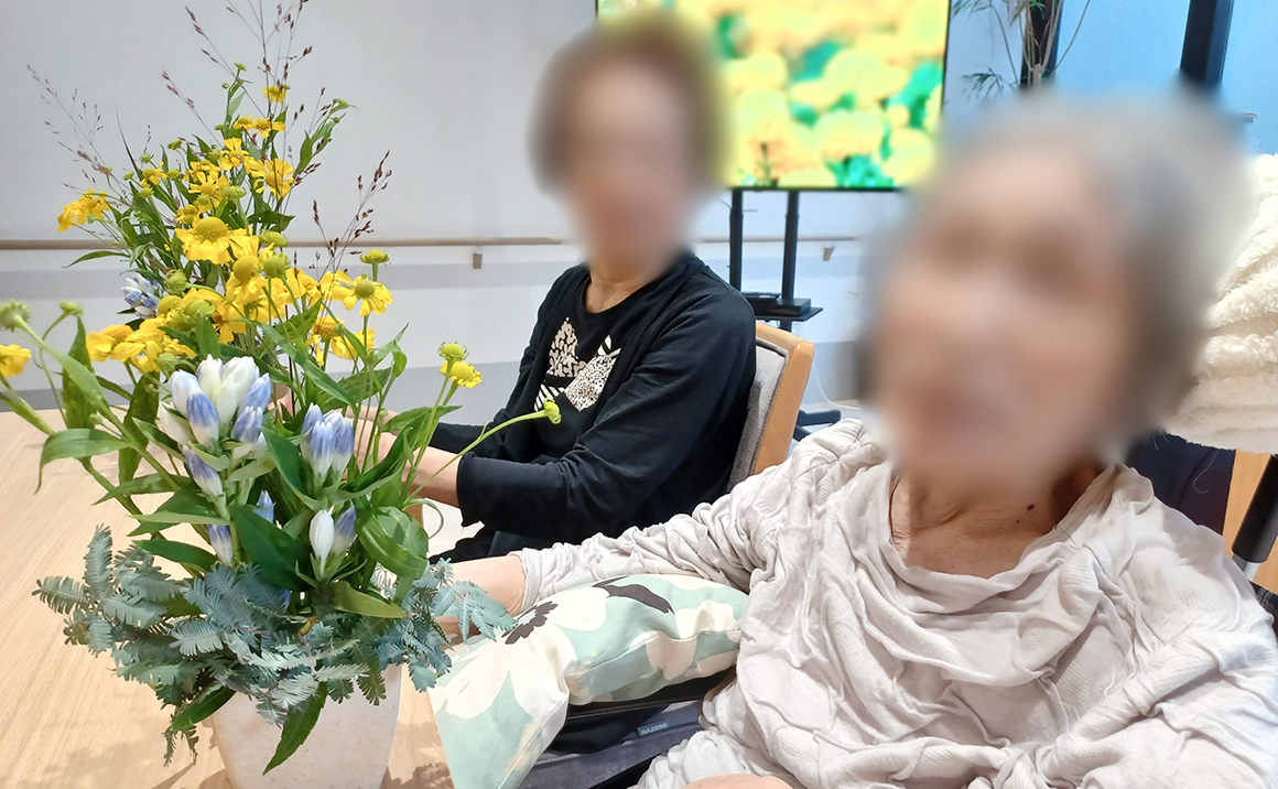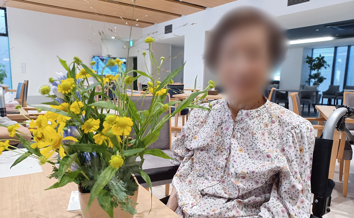 スタッフも見たことのない変わったお花をたくさん取り扱っておられ、入居者の皆さまだけではなく家族様からもとても好評なkirei flowerさんのワークショップは「初めて見るお花ばかりで楽しいね。」「変わった名前のお花がたくさんあって覚えられないわぁ」と始まる前から盛り上がります。
