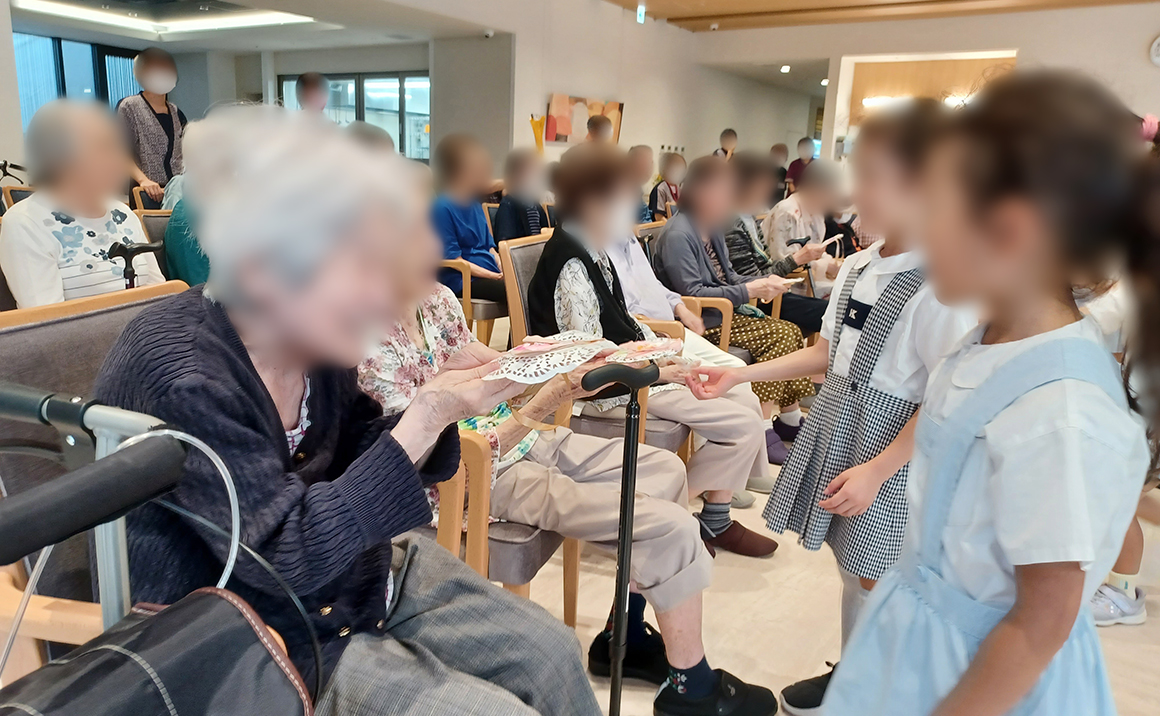 園児の皆さんが帰った後はプレザングラン岡本のスタッフからもメッセージカードのプレゼントを準備し、感謝の気持ちと長寿のお祝いを行いました。