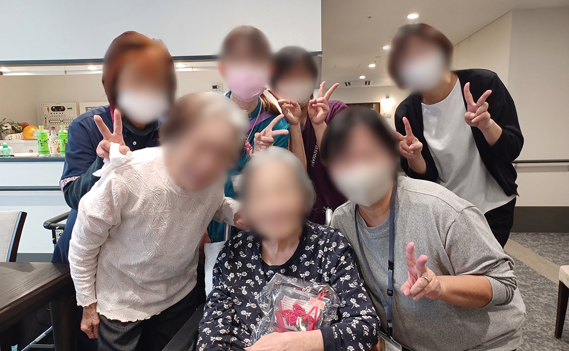 当施設では、入居者様のお誕生日にささやかながらお祝いをしています。 お部屋担当の職員から心を込めたプレゼントをお渡しし、みんなで「HappyBirthday♪」の歌を歌ってお祝いしました。 笑顔に包まれたひとときは、職員にとっても大切な時間です。 これからも入居者様一人ひとりの記念日を大切にし、温かい思い出を積み重ねていきたいと思います。