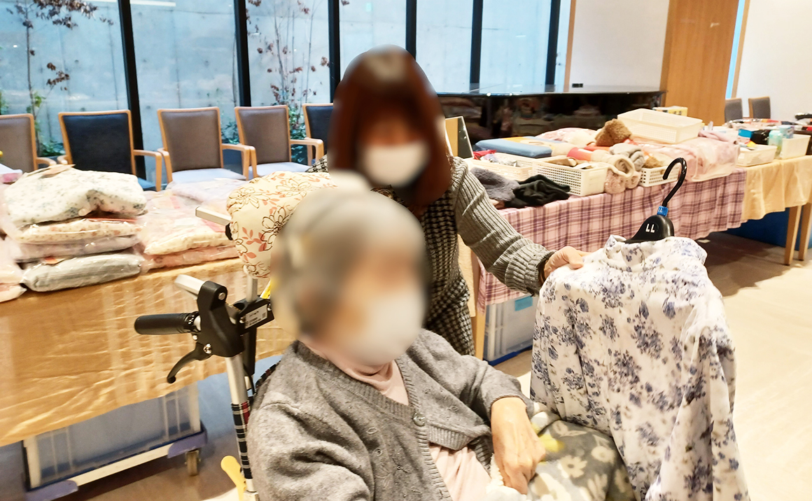 地下レストランにて、お買い物イベントを開催しました。 会場には日用品や食料品、お菓子などが並び、ご家族や職員が付き添いながら、皆さま思い思いにお買い物を楽しまれていました。 「どれにしようかな?」と悩む時間も楽しみのひとつ。笑顔や会話があふれ、ちょっとしたお出かけ気分を味わえる、にぎやかなひとときとなりました。
