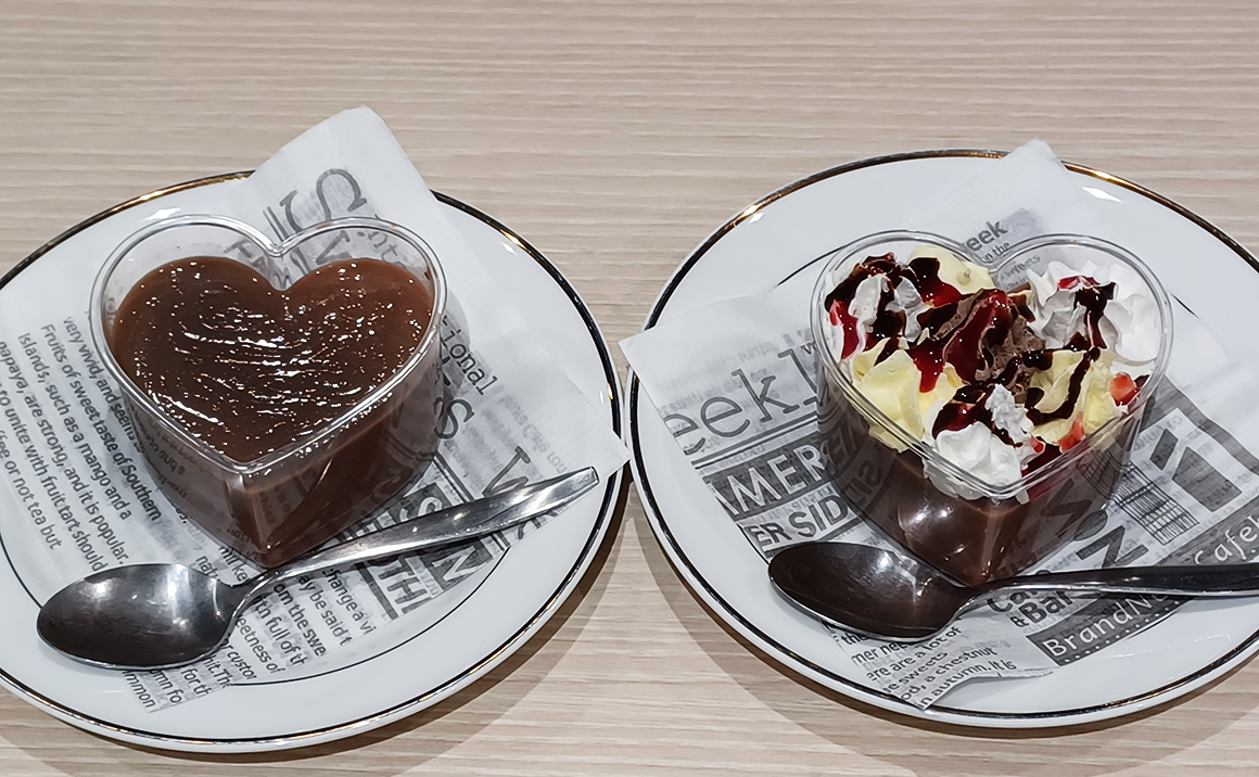 出来上がったオリジナルスイーツを「甘くておいしいね」「自分で作るとまた格別ね」と楽しそうに会話も弾まれ、