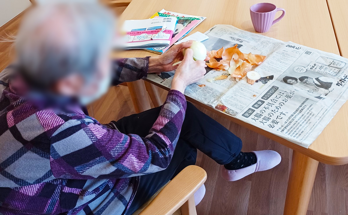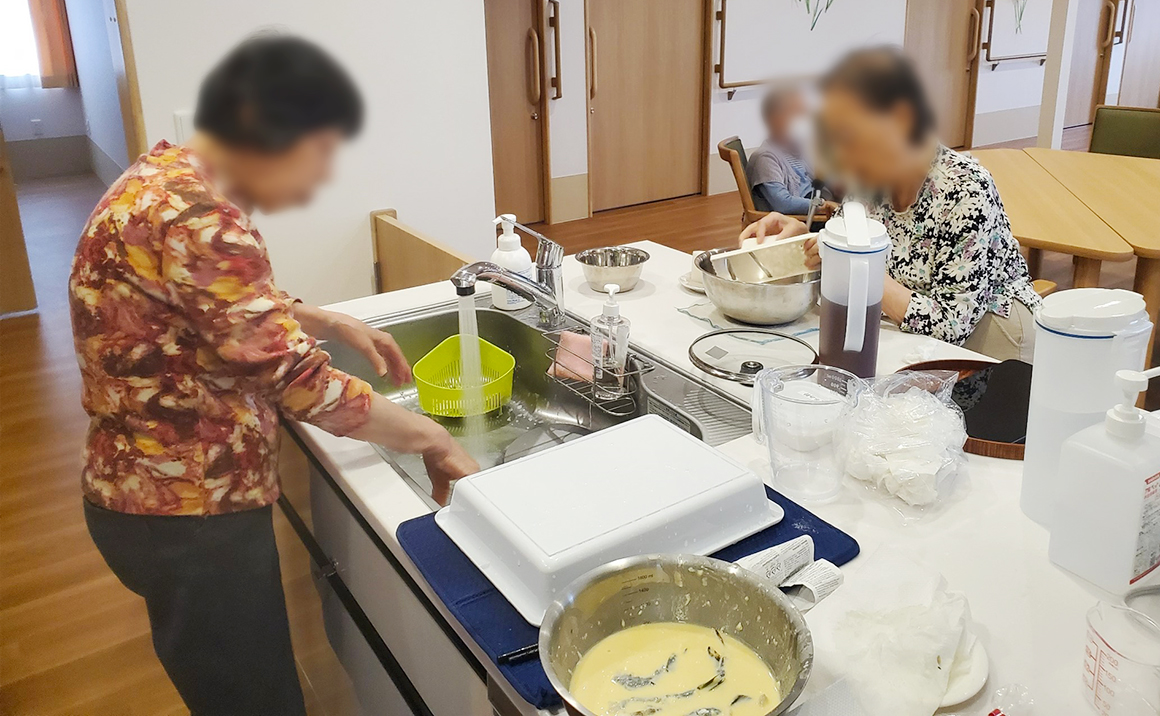 たのしい家茨木真砂では常日ごろから入居者様のできることを継続して行ってもらえるように支援をしています。 そのうちのご様子を少しだけ…。 職員が声をかけたり、ご自身から「私たちがするよ」とお手伝いをしてくださいます…。