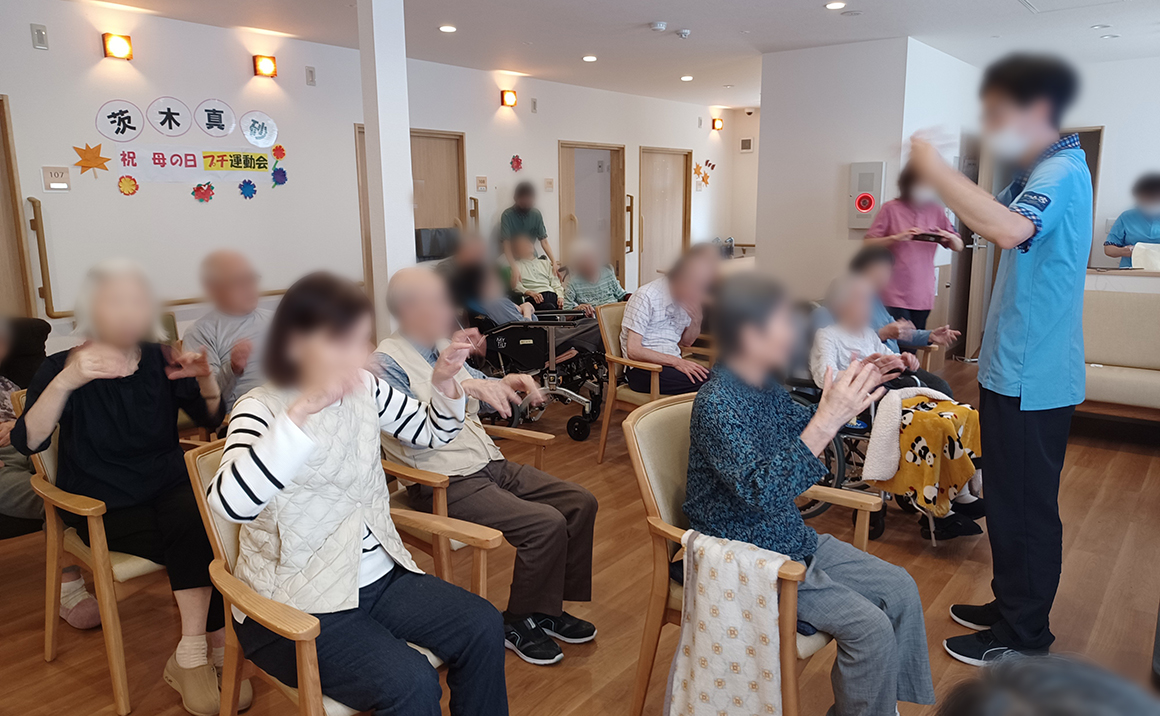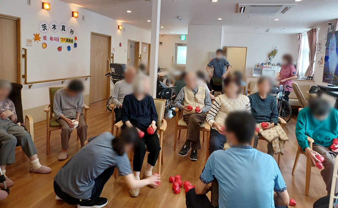 5/16に母の日&ミニ運動会のイベントを開催しました。 母の日イベントは女性利用者様にカーネーションを送らせて頂きました。お花を鑑賞され大変、喜ばれていました。 ミニ運動会イベントは普段身体を動かす機会が少ない為、充実した時間を過ごされました。体操・パン食い競争・玉入れなど。 笑顔いっぱいで「懐かし」を楽しんで頂きました。