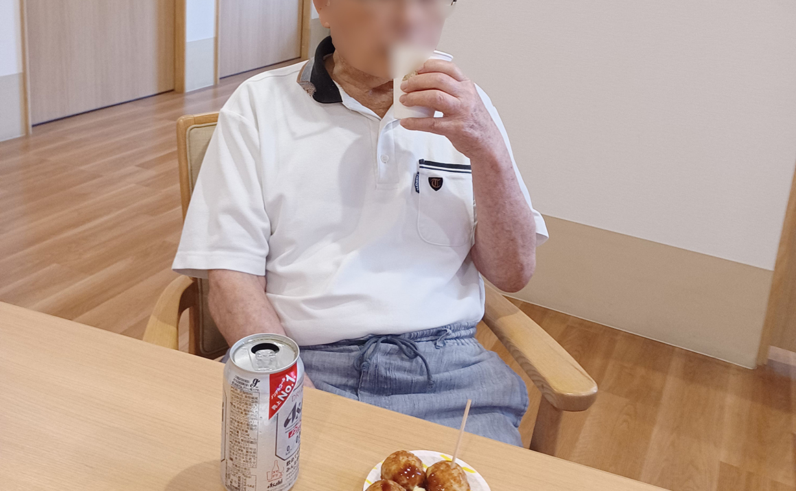 6/15に父の日イベントを開催しました。 「父の日」のプレゼントを色々悩みましたが、男性利用者様に雑誌(クロスワードや囲碁など)をプレゼントしました。 雑誌を手にされ大変、喜ばれていました。雑誌を選択して良かったです! イベントは男性利用者様にノンアルコールビールを提供、全利用者様にたこ焼きを提供!これも高評価頂きました。 また、皆さんでカラオケを楽しみ、充実した時間と「父への感謝」をさせて頂きました。