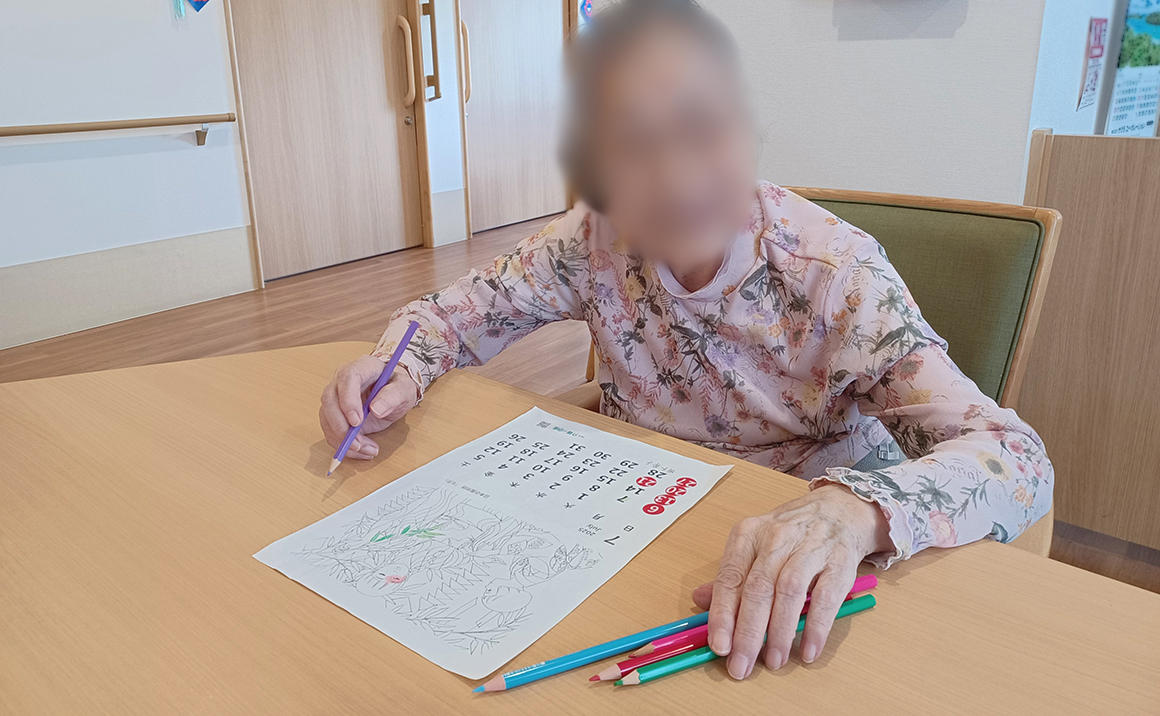 ②レクリエーション→カレンダーの塗り絵をして頂きました。