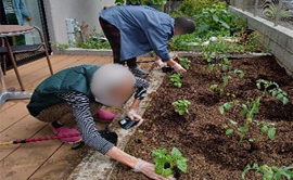 今年は「キュウリのカーテン」を作ります。食堂裏の菜園はミニトマトを栽培いたします。