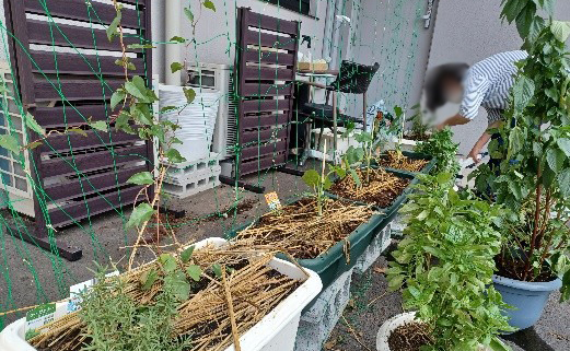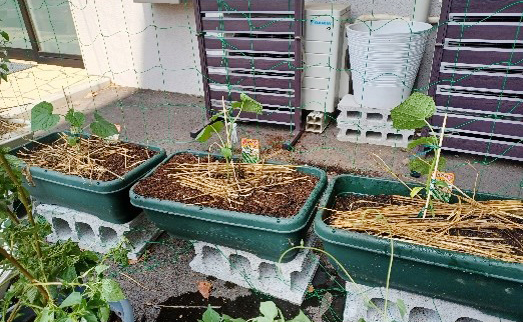 プレザンメゾン西東京「園芸クラブ」の報告です。 春に植えたキュウリが今年の猛暑で枯れてしまいました。 秋収穫のキュウリを植ることにしました。 玄関がキュウリのカーテンになるように、一生懸命に育てたいと思います。ご期待ください!