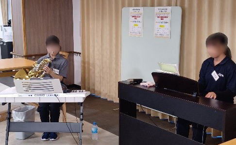実習生から発案され、実施された自主レクリエーションです。電子ピアノとホルンの演奏でした。