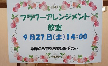プレザンメゾン西東京 9月「フラワーアレンジメント レクリエーション」です。 今月のお花は「ススキ・リンドウ・ヒペリカム・スプレー菊・トルコ桔梗・ピンクッション」です。 まだまだ暑い毎日ですが、少しずつ秋に近づいています。 アレンジメントも秋の装いです。