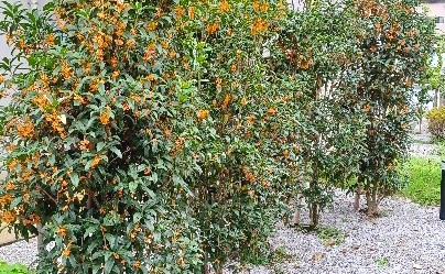 プレザンメゾン西東京 施設周囲の植栽の「キンモクセイ」が甘い香りを放っています。