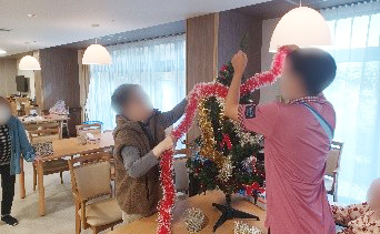 プレザンメゾン西東京 来月のクリスマス会に向けて、「クリスマスツリーの飾りつけ」を行いました。 「少し気が早いんじゃないの」「綺麗で明るくて楽しいわ」などご意見を頂戴いたしました。 今日から施設はXmasカラーになりました。