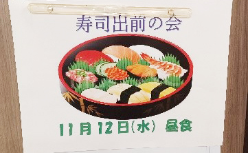 プレザンメゾン西東京 今月の「お寿司出前レクリエーション」です。 皆様大好物のレクリエーションです。 1か月ぶりの開催でしたが、長く長く待ちわびたご様子でした。 「美味しかったよ」「ありがとね」とご感想をいただきました。また来月をお楽しみに!!