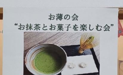 プレザンメゾン西東京 今月の「お抹茶レクリエーション」です。今回のお菓子はミルク饅頭をご用意いたしました。「お茶もおいしいけど、お菓子もおいしかったわよ」「お干菓子がいいわ」とまあまあの評判でした。また来月もお楽しみに!