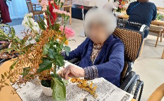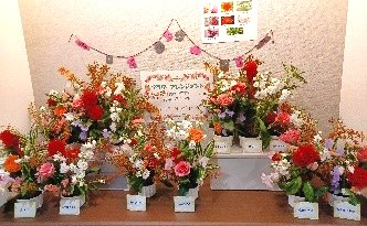 プレザンメゾン西東京 今月のフラワーアレンジメントレクリエーションです。 今月のお花は「バラ・ストック・ケイトウ・ガーベラ・ユキヤナギ・ドラセナ・スターチス・スイートピー」です。 季節感のある花材を活かしたアレンジメントを作られました。玄関を華やかに飾ります。