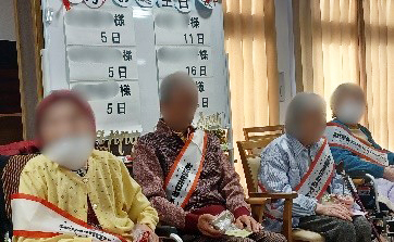 プレザンメゾン西東京 11月誕生会です。 今月は 6名の方がご対象です。お一人お一人にご挨拶をいただきました。 「年齢の寿命ではなく、健康の寿命が大切です。運動をしっかり行って、食事を残さず召し上がって、元気に、楽しく過ごしましょう!」 と元気にお話いただきました。 見習っていきたいと思いました。皆様、おめでとうございます。
