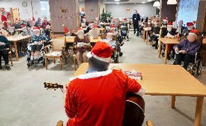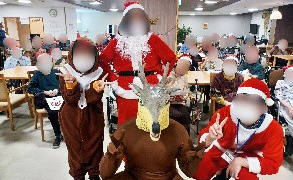 プレザンメゾン西東京 「クリスマスレクリエーション」です。 今年のクリスマスは、サンタクロース2名、トナカイ2頭来てくれました。 ご入居者様もスタッフも全員がサンタ帽子をかぶって、会場を盛り上げてくれました。 ギター演奏で、クリスマスソングを大合唱の後はXmasプレゼントです。 サンタとトナカイが手渡しでプレゼントいたしました。 「楽しかったよ」「童心に帰ったみたいにウキウキしましたよ」とご意見をいただきました。 また来年もお楽しみに!
