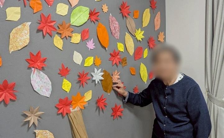 また秋の壁画作りでは参加者が思い思いに紅葉を作成し、壁に貼り付けました。