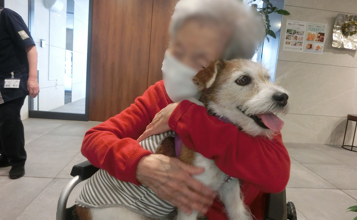 ご入居者様のご家族様が愛犬を連れてきて下さいました。 定期的にお顔を見せに来てくださっており、当施設のアイドル的存在です。 ご自宅で犬を飼われていた方や犬好きな方が多く、この時間を楽しみにされていました。 とても大人しく可愛らしい子で、おやつをあげたり抱っこをさせて貰いました。 皆様「かわいい!」「癒されるねえ」と仰り、スタッフもご入居者様も心安らぐ時間となりました。 次回のふれあいが楽しみです♪
