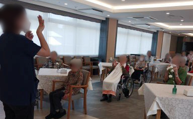 そのため西宮香櫨園では普段より食事前は介護士やPT、看護師が体を動かす集団体操と口腔体操をしていますが、