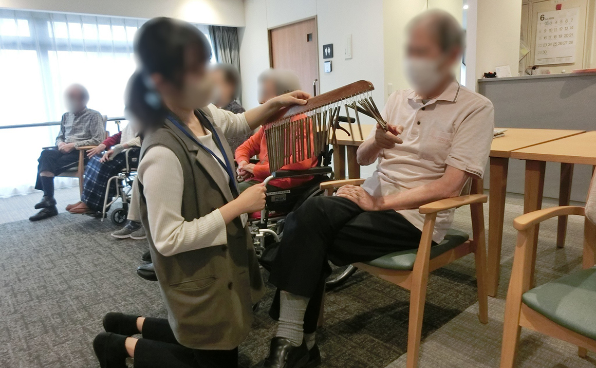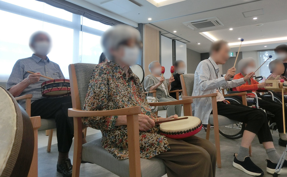 学生様やボランティア団体様によるイベントに加え、週に一度、音楽療法士が施設にて音楽療法を実施しています。