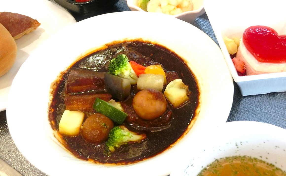 12月の逸品メニューはビーフシチューです♪ ゴロゴロとお肉や野菜が入ったシチューは老舗洋食店ヨシカミの定番メニューです。 「たまの贅沢がいいのよねぇ。来月の逸品料理も楽しみ!」 食べられたご入居者様は喜ばれていました。 逸品料理は毎月10名以上の入居者様が注文され、月一回のお楽しみの一つとなっております。