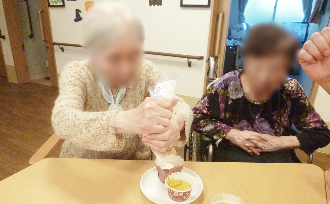10月最後のイベントといえば、やはりハロウィン!たのしい家武蔵境でも、もちろん開催しました! イベントまでにご入居者様と一緒に施設全体をハロウィン仕様に大変身させました。 ハロウィン当日はメインイベントとしてカボチャのカップケーキ作りを行いました。 ご入居者様お一人おひとりにデコレーションを行って頂き、世界にたった一つのオリジナルカップケーキが完成しました。 最高の笑顔とともに、今年も思い出に残るハロウィンを楽しく終えることができました♪