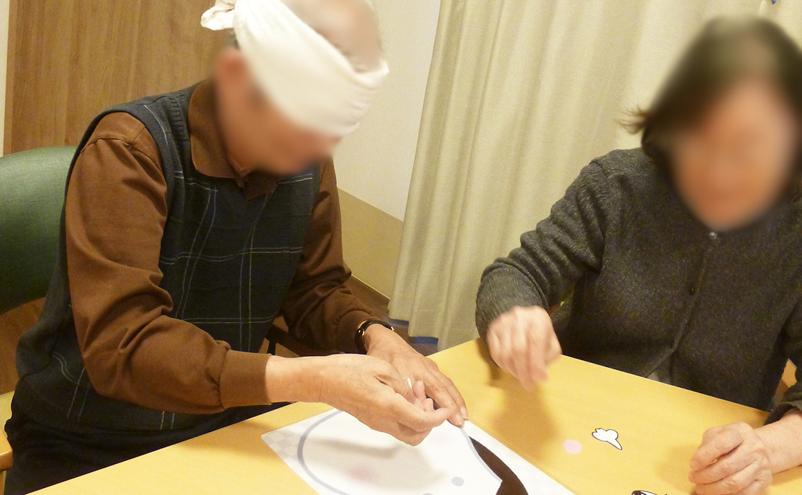 隣の方に声をかけてもらいながら作った福笑いは、思わず大笑いしてしまうようなユニークな仕上がりばかりでした。