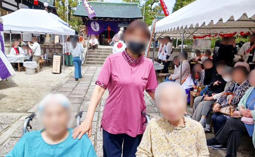 境内に入ると、屋台や賑やかな雰囲気に「懐かしいなぁ」「昔よく行ったわ」と笑顔で話される利用者様の姿が印象的でした。