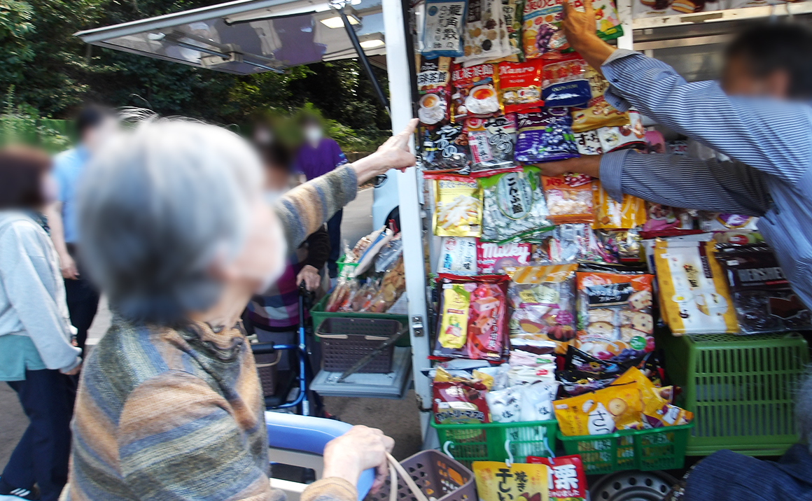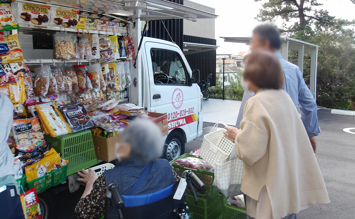 今日は、初めて施設に移動コンビニがやって来ました