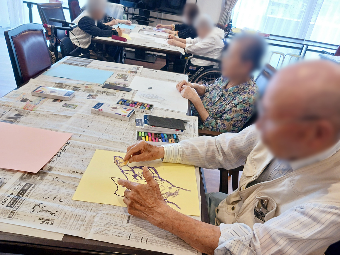 13時半頃から移動コンビニが来てからのパステル画教室の日でした