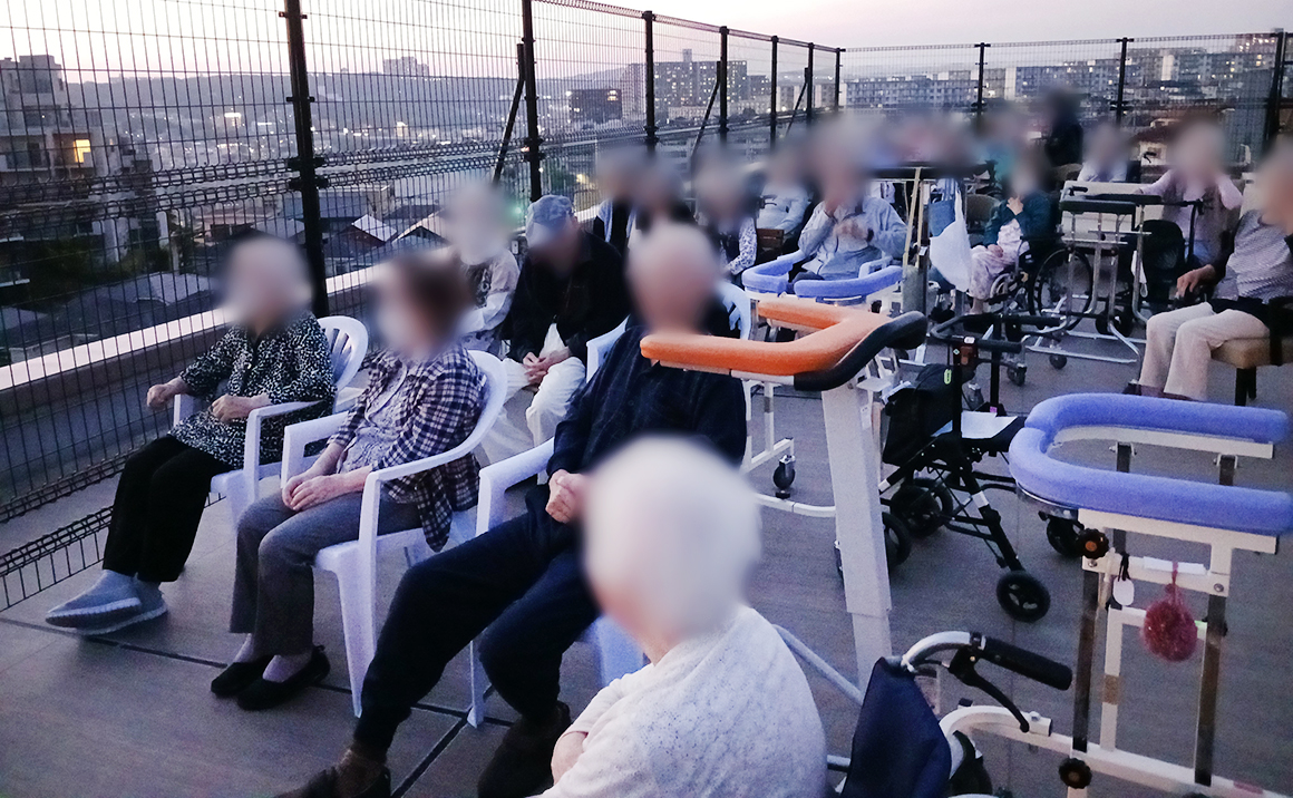 8/3に開催された国営明石海峡公園での花火大会を鑑賞しようと4階の屋上に集まりました
