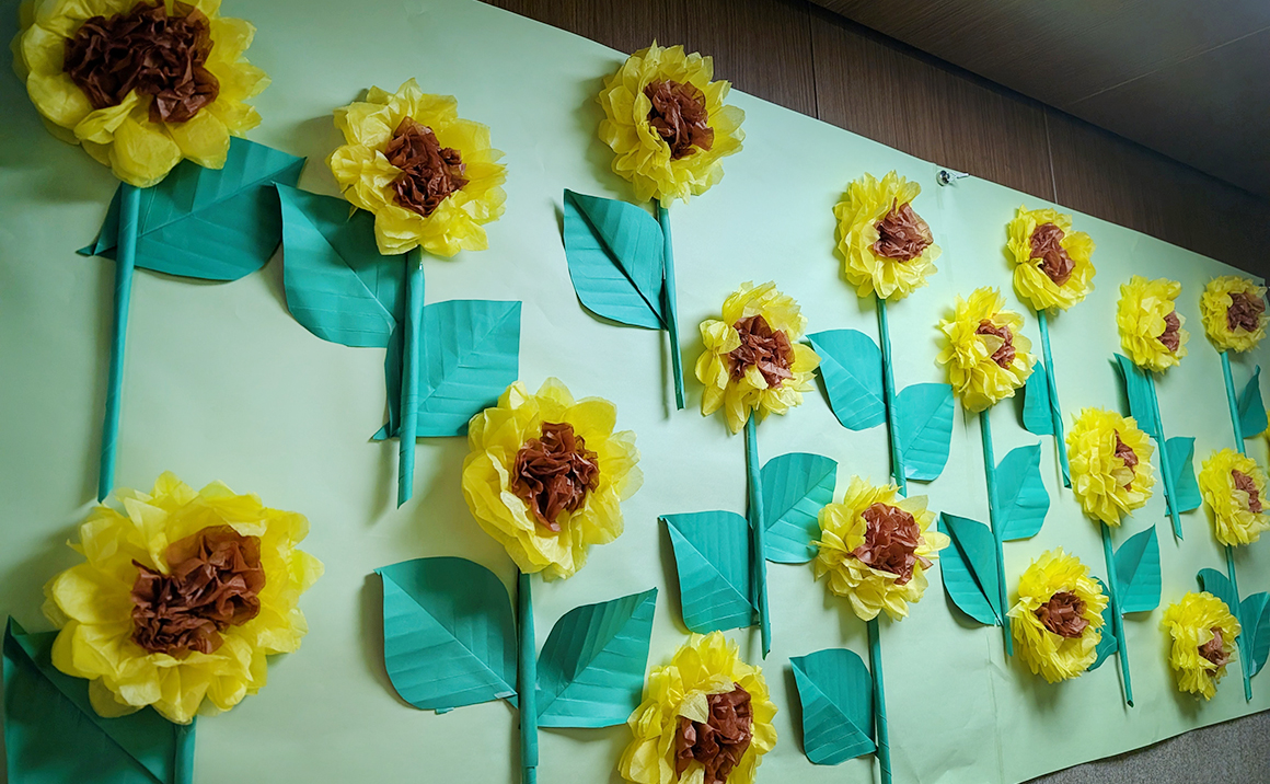 施設内では2基のエレベーターがあり、もう1基のエレベーターはひまわりが一面に咲いています