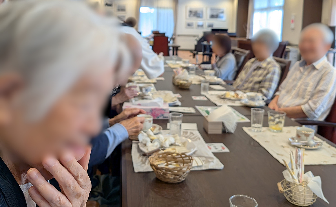 今回も3F+1Fのご招待されたご入居者様と1階の食堂で楽しいひと時を過ごしました
