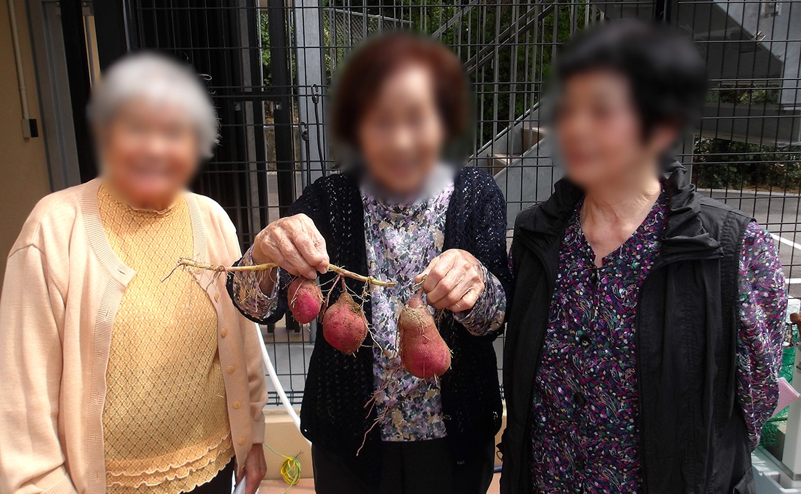 収穫を手伝ってくださったご入居者様は「久しぶりに土を触って楽しかった」と仰ってくださいました