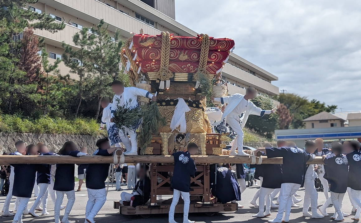 プレザンメゾン神戸ジェームス山がある神戸市垂水区の地域のお祭りを見学させていただきました 施設のある神戸市垂水区は4つの地域の御神輿があり、そのうちのひとつの「東高丸」の神輿のやりまわしなどを目の前でみせて頂きました 施設から車3台で施設の下のローソンまで数回往復して送迎をしました お祭りのあった10/10は良いお天気でとても暑かったですが 目の前で迫力満点のやりまわしをしっかり見ることができて感動しましたね