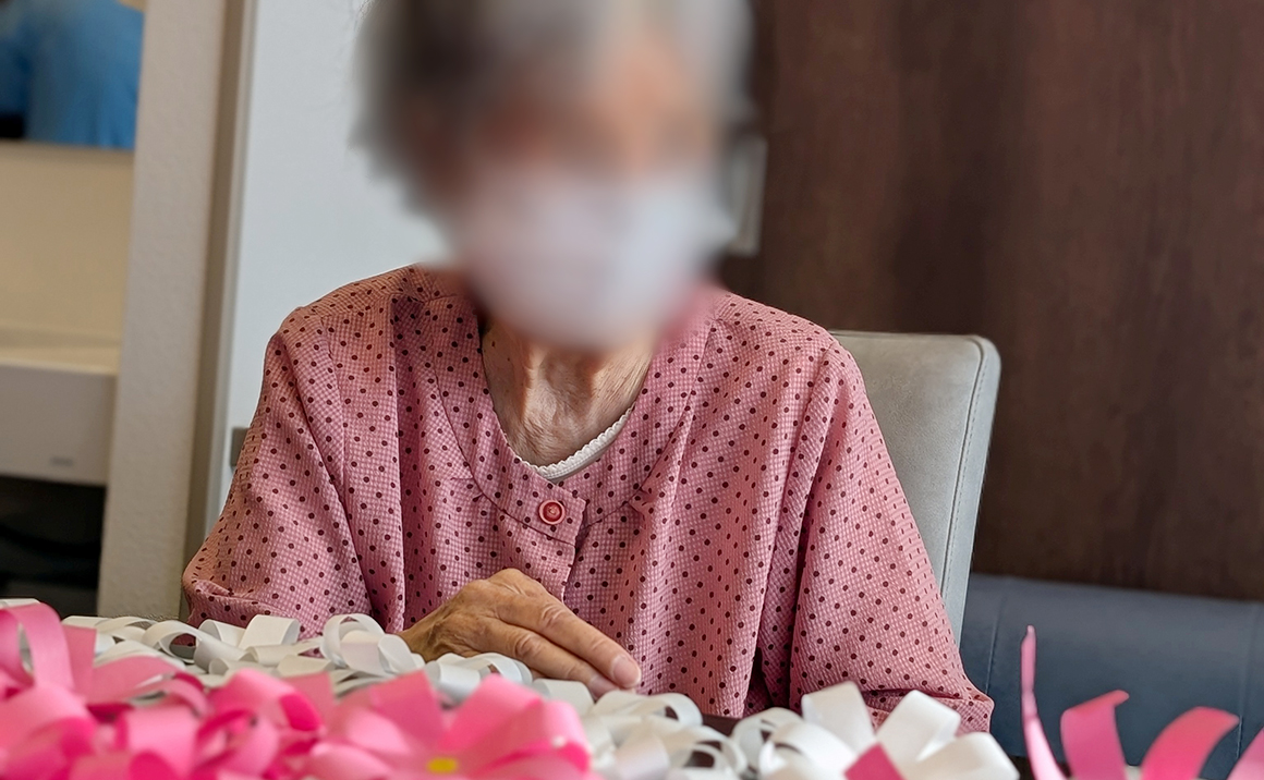 今日は1階フロアの日曜のひとときをお見せします 秋の壁面作りを熱心にされています 紙テープで何かを一生懸命製作中です おしゃべりをしながらの作業は楽しくてどんどん進みます 何ができるのか楽しみですね