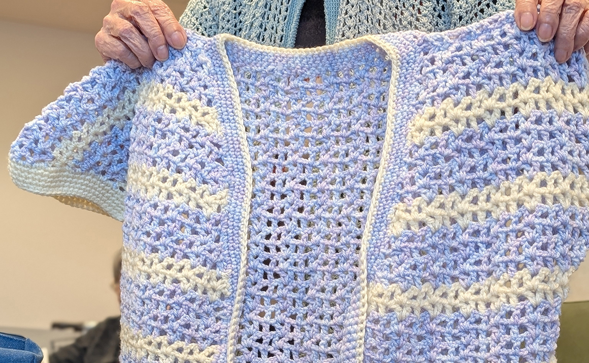 編み物の指導は、ご入居者様の中に元編み物教室の先生がおられるのでその方ができないところや困っているところを優しく教えてくださっています