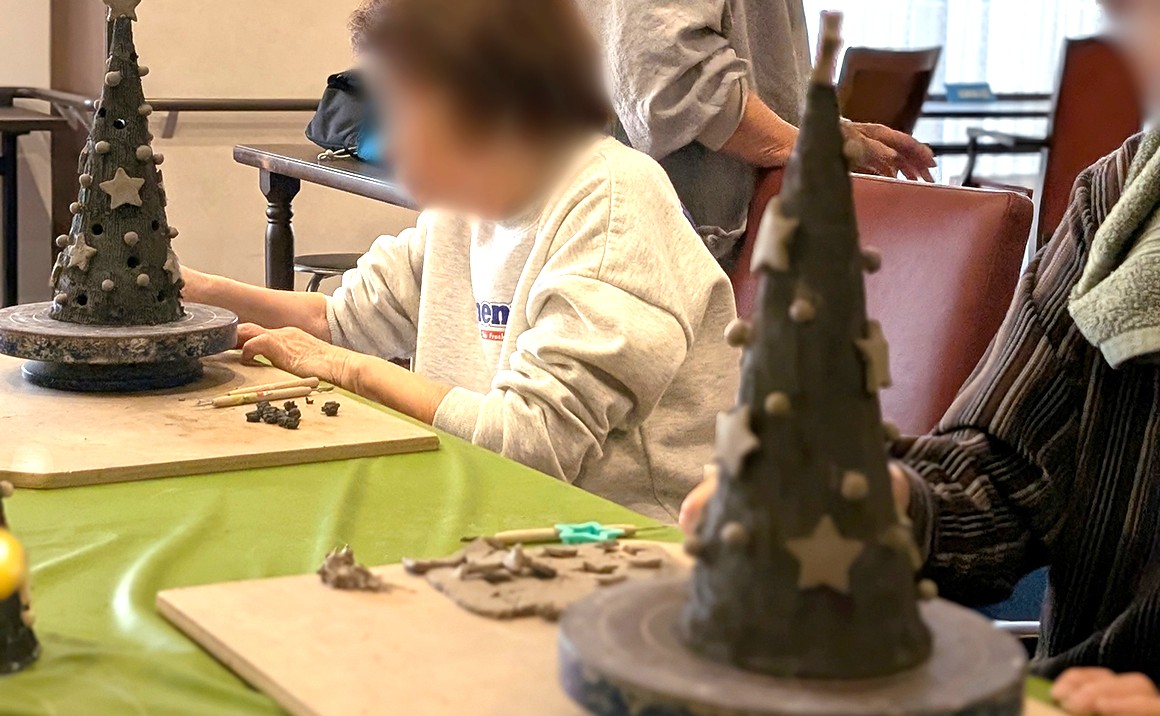 今回の陶芸教室はクリスマス前ということもあり、クリスマスツリー型のライトの制作となりました