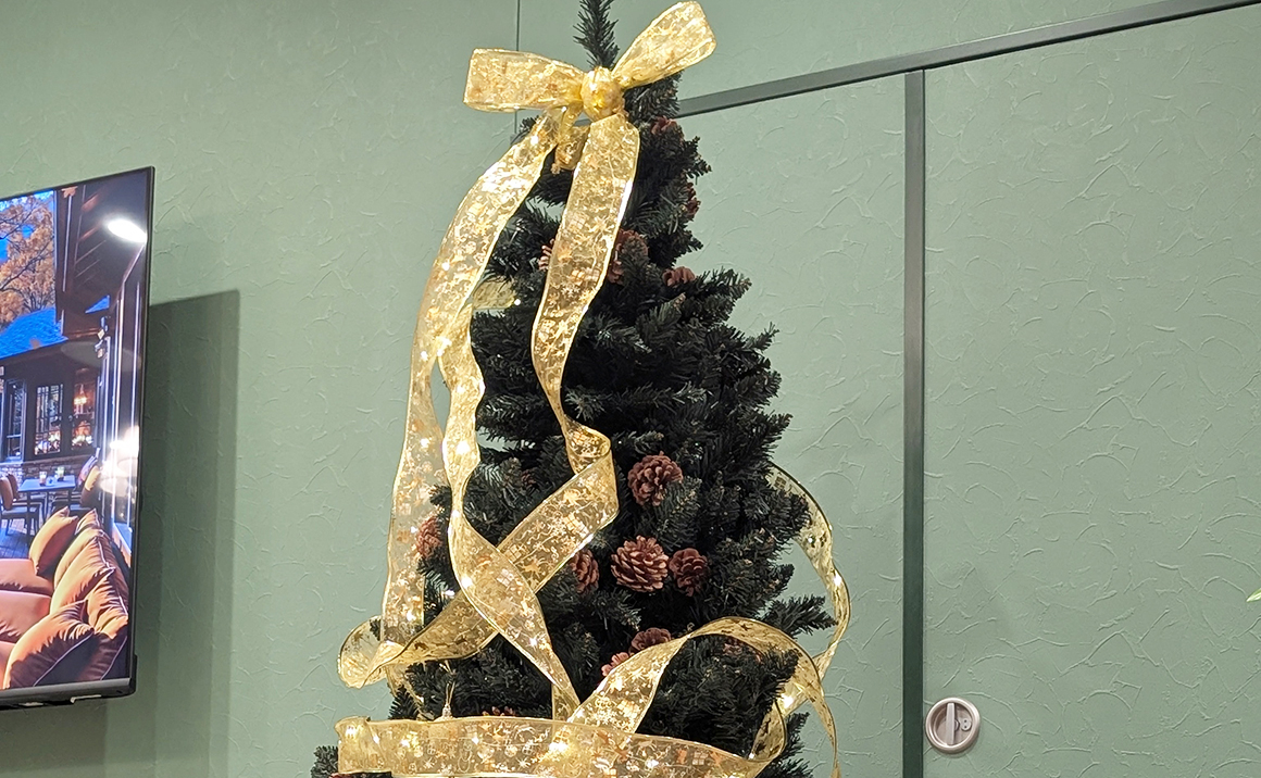 2枚目3枚目の画像は1Fフロアの談話室にあるクリスマスツリーです